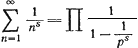 где П обозначает произведение, которое берется по всем простым числам р. Из этой формулы он получил новое аналитическое доказательство бесконечности числа простых чисел, из нее же он вывел (правда, без достаточно строгого обоснования) приближенное равенство